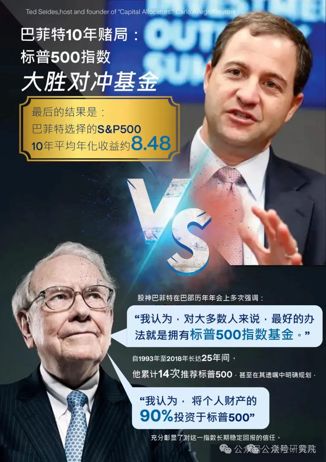 结局大家都知道了。十年后,标普500指数大胜,而那些甚至有些都没跑赢国债收益率的对冲基金经理们,只能黯然认输。这告诉我们,哪怕是华尔街最顶尖的专业人士,在长期维度上,也难以战胜代表国运的指数。